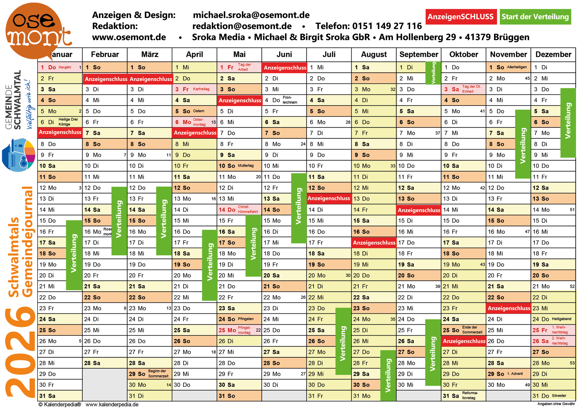 Die Erscheinungspläne für "ose Mont-Schwalmtals Gemeindejournal" sowie für
